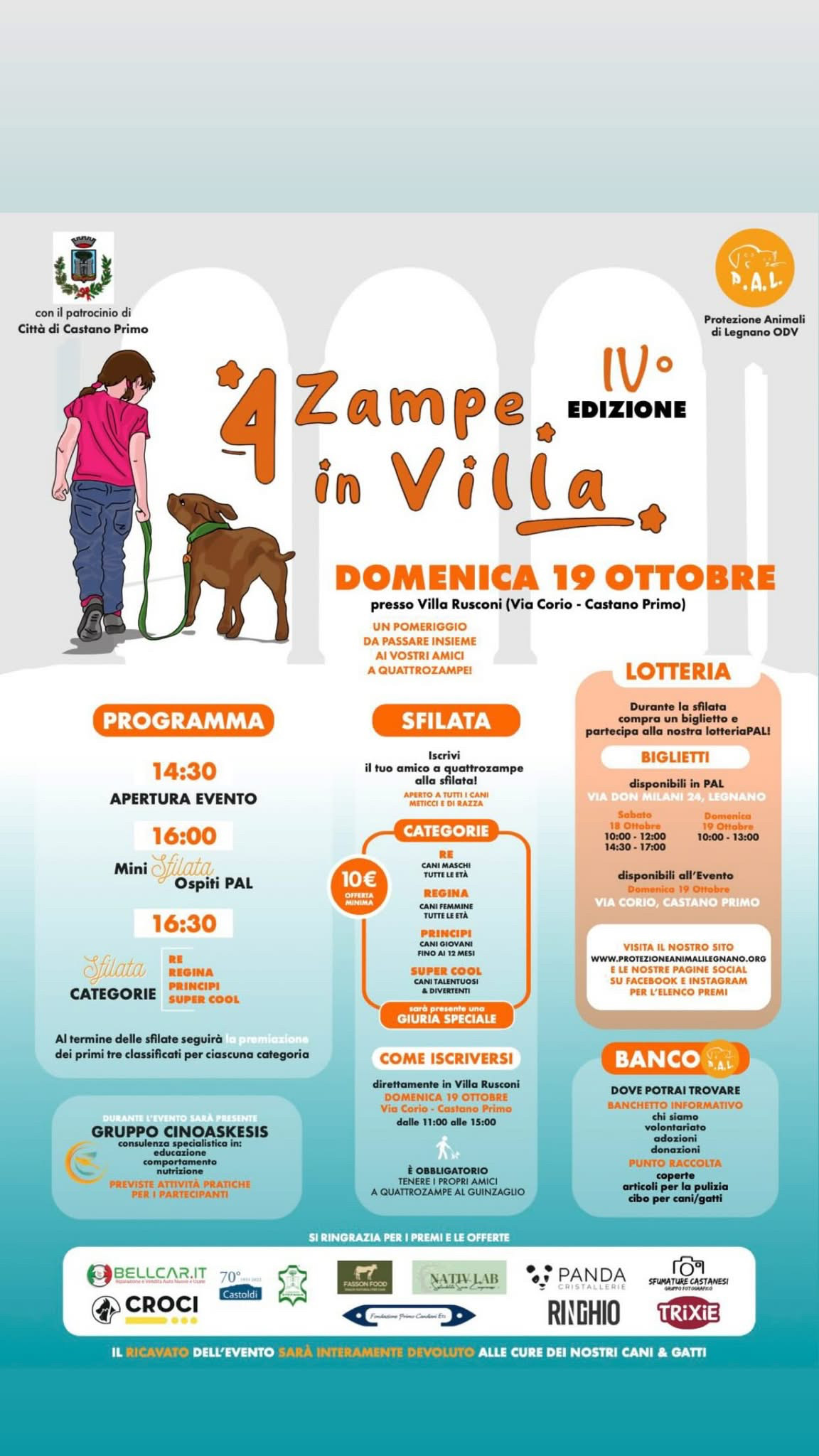 "4 zampe in Villa" domenica 19 ottobre 2025 dalle ore 14.30 promossa da P.A.L. di Legnano
