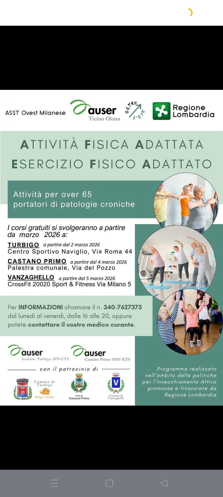 A partire dal 4 marzo 2026 sul territorio del Comune di Castano si svolgeranno i corsi di attività fisica adattata ed esercizio fisico adattato, anche definiti AFA/EFA, rivolta a over 65 portatori di patologie croniche.