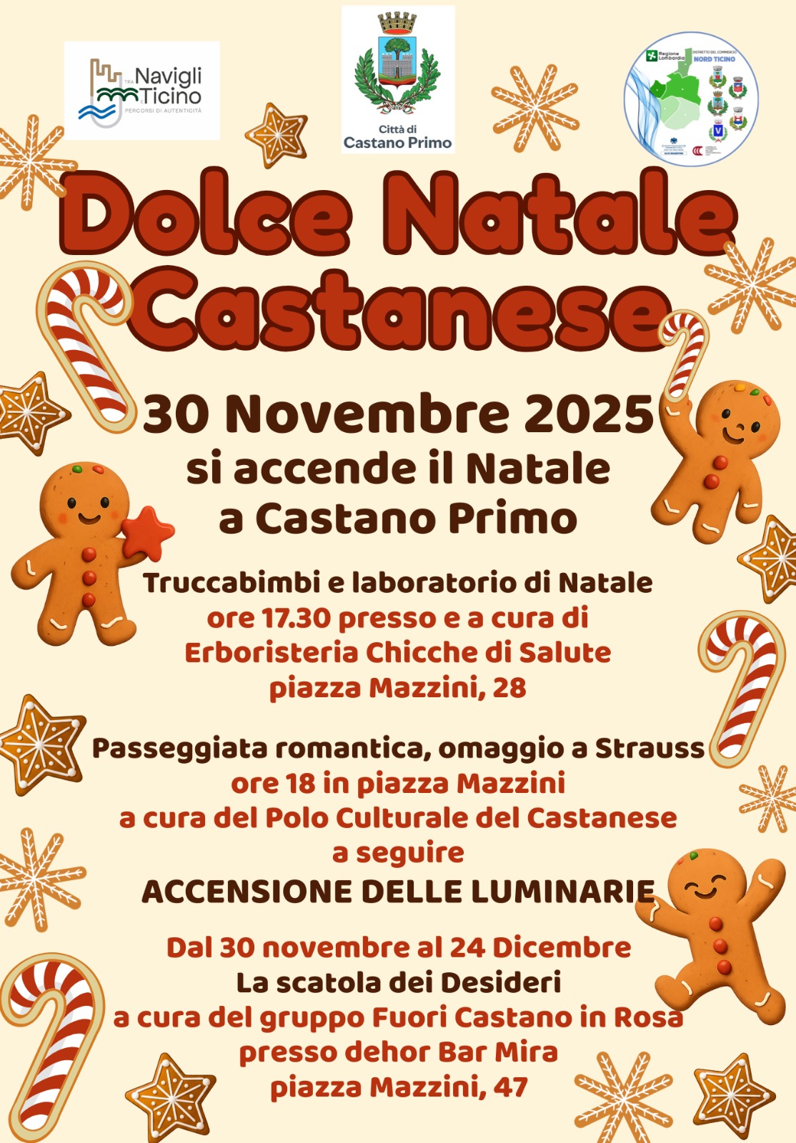 Il Dolce Natale Castanese 2025 si accende il 30 novembre, con musica, spettacoli, mercatini e appuntamenti per i più piccoli