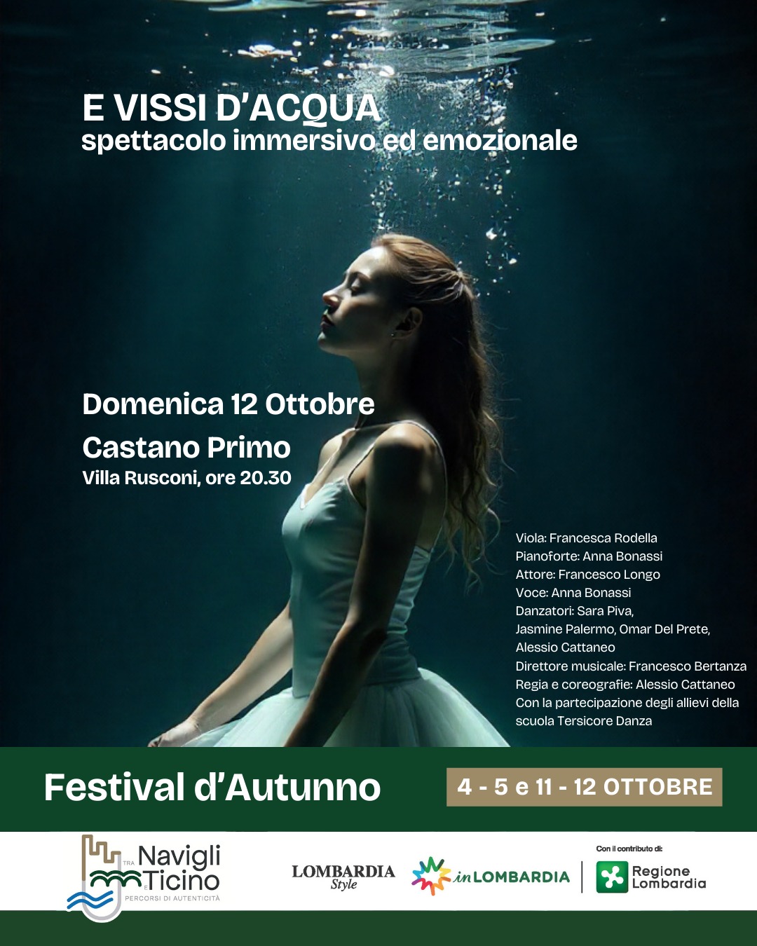 - ore 20.30, "E vissi d'acqua" spettacolo immersivo ed emozionale di Alessio Cattaneo, sala rappresentanza Villa Rusconi