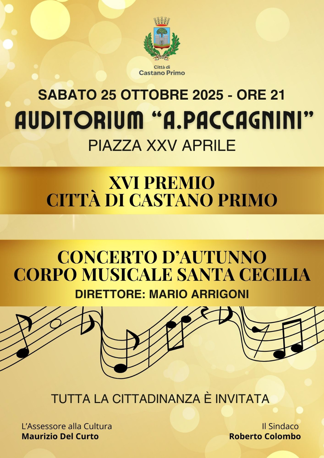 Sabato 25 ottobre 2025, alle ore 21 presso l'Auditorium "A. Paccagnini", si svolgerà la cerimonia di conferimento del Premio Città di Castano Primo, che quest'anno giunge alla XVI edizione.