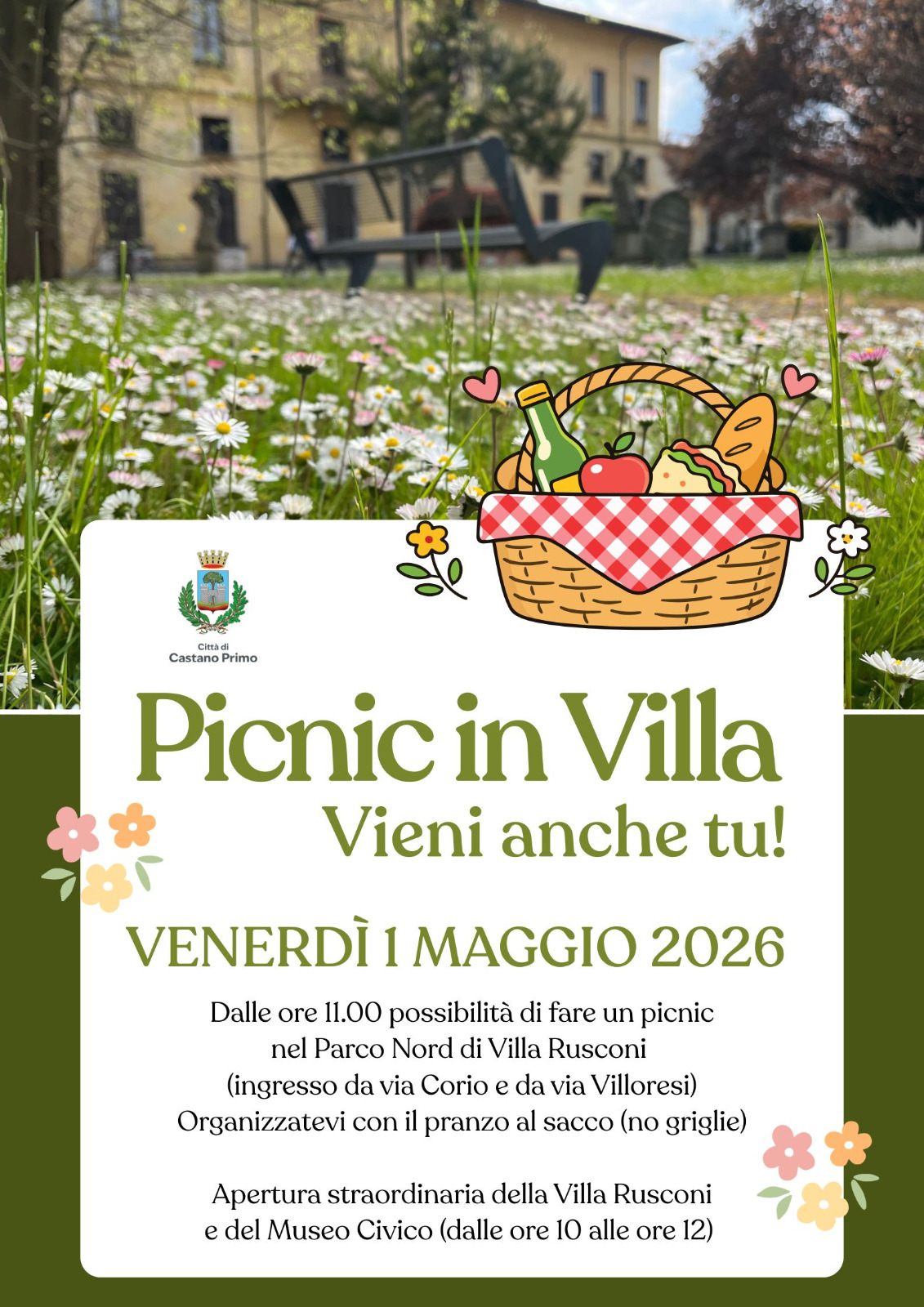 Dalle ore 11:00 è aperta alla cittadinanza la possibilità di fare un picnic nel Parco Nord di Villa Rusconi. Ingresso da via Corio e da via Villoresi.