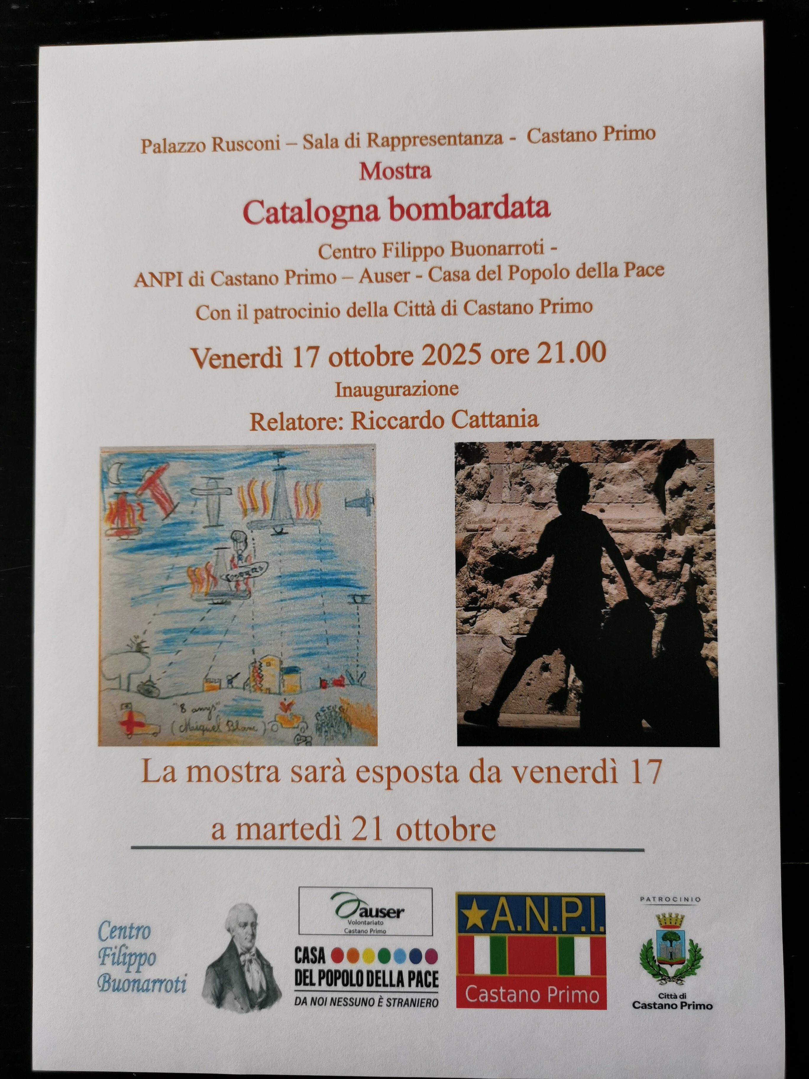Mostra "Catalogna bombardata" da venerdì 17 ottobre 2025 ore 21.00 a martedì 21 ottobre 2025 presso Villa Rusconi promossa da Centro Filippo Buonarroti, ANPI di Castano Primo, Auser e Casa del Popolo e della Pace