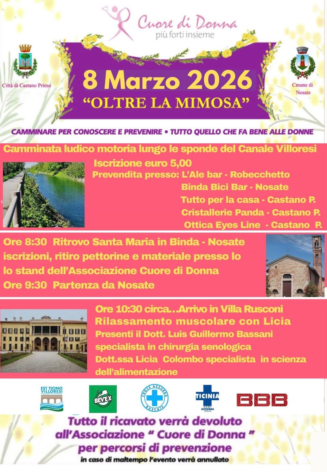 Come ogni anno, in occasione della Festa della Donna, l'Associazione "Cuore di Donna" propone la tradizionale Camminata in rosa domenica 8 marzo, da Nosate a Castano Primo.
