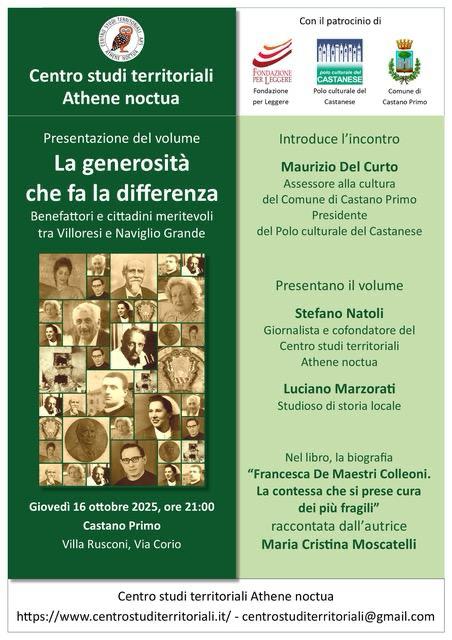 Il Centro Studi Territoriale Athene noctua presenta il volume "La generosità che fa la differenza", benefattori e cittadini meritevoli tra Villoresi e Naviglio Grande.