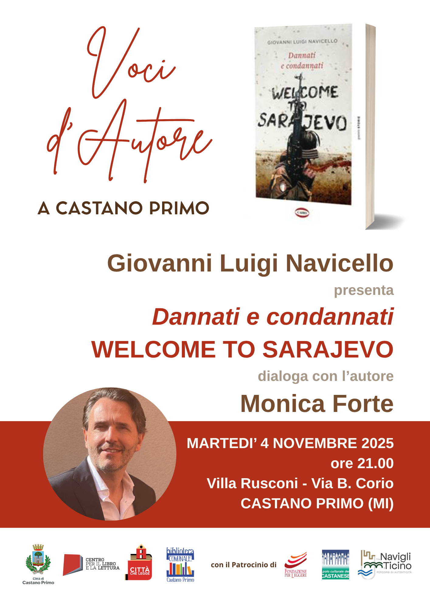 Martedì 4 novembre, alle ore 21.00, in Villa Rusconi - Sala Consiliare, Giovanni Luigi Navicello presenta Dannati e condannati. Welcome to Sarajevo (Cairo Editore).